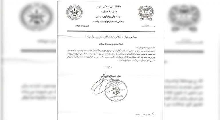 بر اساس این مکتوب که روز یکشنبه (۶ جوزا/ ۲۶ می) نوشته شده است، وزارت دفاع طالبان به ریاست نظامی و کشف استخباراتی این گروه دستور داده است تا از ساعت ۱۰ شب بر رفت و آمد مردم قیود شبگردی وضع کنند و تنها به بیماران، بیمارداران و افرادی که مشکل جدی دارند اجازه گشت و گذار بدهند.